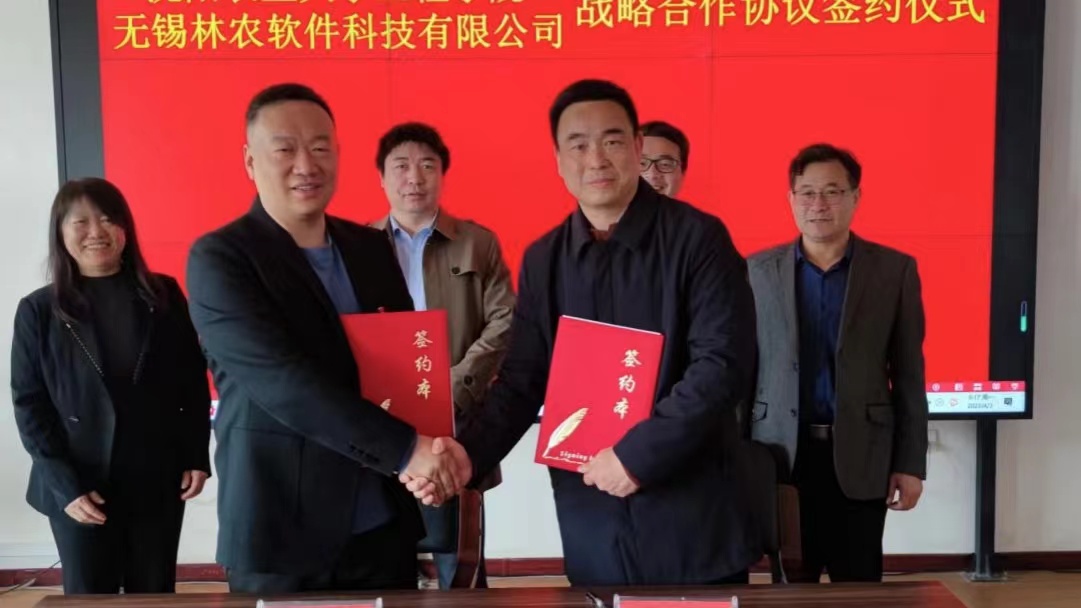 三亿在线院长王伟、副院长邬立岩、辛明金教授、宋玉秋教授、无锡林农软件科技有限公司董事长李小卫和总经理李巢湖出席签约仪式。
