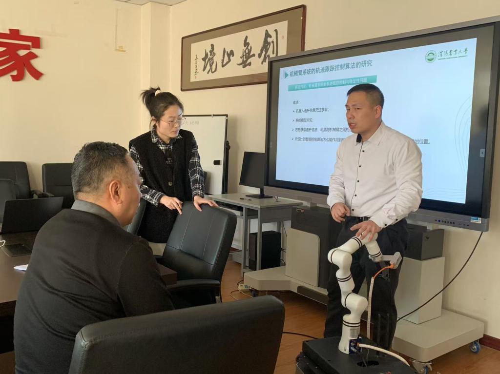交流会上,新松教育科技集团田帅对机器人的开发及算法设计与参会人员进行了深度交流,并对我院科研团队面临的科学瓶颈给以专业性建议。