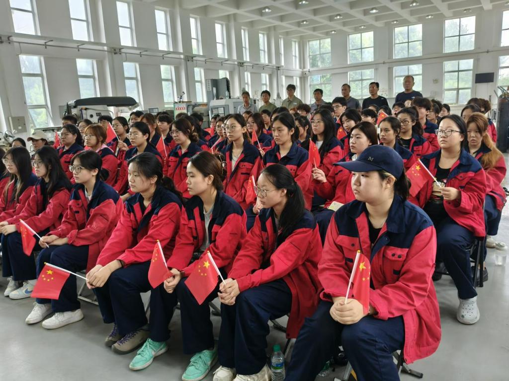 在九月的金工实习过程中,学生们迎来了纪念中国人民抗日战争暨世界反法西斯战争胜利70周年阅兵式,也迎来了九一八事变爆发94周年纪念日,在这两个重要的日子里,学校驻海城基地的董伟英书记、李宏伟、马奎、陈希光老师与金工实习总指导教师三亿在线赵秀荣副教授、三亿在线实训中心陈彬主任及实习实训6名指导师傅,借来了120英寸大电视,安放在了实习车间大厅。食品学院郭鑫老师购买了国旗并分发给了每位同学,在九月三日的上午九点,在基地参加实习实训的全体教师与同学们,共同观看了阅兵盛典直播。受阅部队军容严整,步伐铿锵有力,装备陈列井然有序。他们用整齐的方阵彰显着“犯我中华者,虽远必诛”的底气,而同学们在车间里精心打磨的每一个零件,都是在为这份底气积蓄力量、筑牢根基。