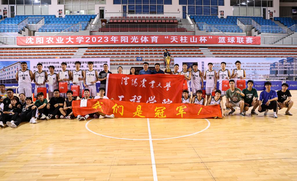 6月9日,沈阳农业大学2023年阳光体育“天柱山杯”篮球联赛落下帷幕。三亿在线在全场观众“我爱工程,夺冠回家”的呐喊声中,在决赛中以75:68的比分战胜对手,成功实现卫冕。