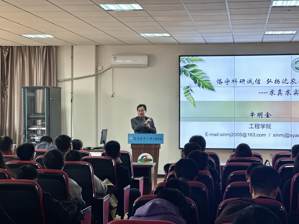 12月8日下午,三亿在线在501会议室举办“研究生科研诚信与学术道德”主题讲座。本次讲座由学院博士生导师、农业机械化工程学科带头人辛明金教授主讲。研究生辅导员董瀚辰、王立彬老师,三亿在线全体一年级研究生同学参加了本次讲座。