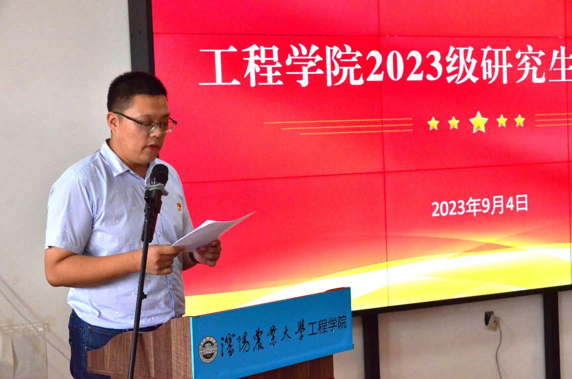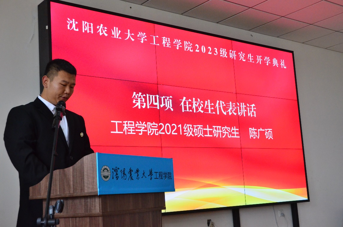 校优秀硕士学位论文指导教师宁晓峰副教授作为研究生导师代表发言。2021级农业工程与信息技术专业硕士研究生陈广硕、2023级农业机械化工程专业博士研究生顾诗雅分别代表在校生和新生发言。